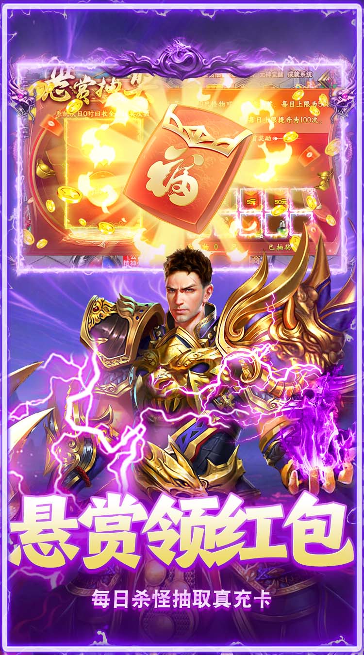3.悬赏抽奖:每日打怪即可抽取充值卡、红包,激活线上累充福利